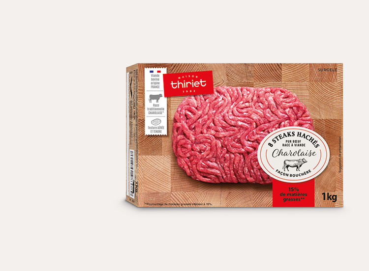 *La charolaise est une race à viande française née près de Charolles en Saône et Loire, reconnue pour ses qualités gustatives et sa jutosité. Des steaks hachés à la texture tendre et moelleuse, hachés et présentés « façon bouchère », 100% muscles, qui raviront les amateurs !