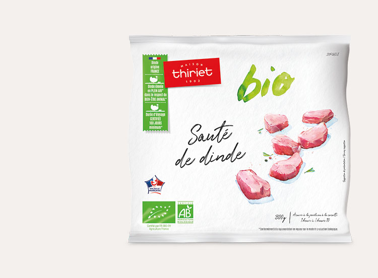 Cette viande conviendra parfaitement pour vos blanquettes ou fricassées.* Nos dindes sont élevées en France selon le cahier des charges de l'agriculture biologique et bénéficient d'un élevage en plein air d'une durée de 100 jours minimum certifiée*, dans le respect du bien-être animal. Elles bénéficient aussi d'une alimentaion 100% végétale, minérale et vitaminique avec 95% minimum de matières premières issues de l'agriculture biologique*.